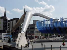 Representation of vapour trails outside Coventry Transport Musuem